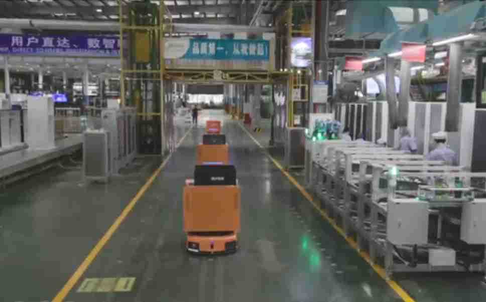 为车载冰箱物流配送打造的智能解决方案,,包含产中物流通过潜伏举升AMR搬运至线边,,产后成品物流智能仓储,,,,流程包含产中物流智能齐套入库,,,线边安灯叫料AMR智能配送至线边,,,,成品入库、、、、出库,,,通过无人堆高车机器人,,,,智能仓储管理替代人工作业管理,,,实现更高存储、、、、更高效率、、、、更具柔性化的解决方案。。。